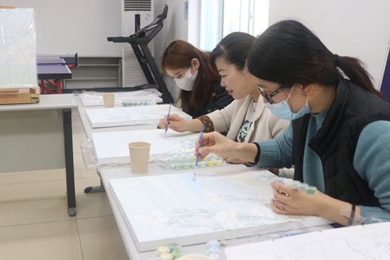 活动中,广大女职工兴趣盎然地拿起画笔肆意挥洒,沉浸在油画创作中,大家互相交流,探讨如何调色、构图、上色,相互欣赏品评各自作品,活动现场氛围温馨欢快。